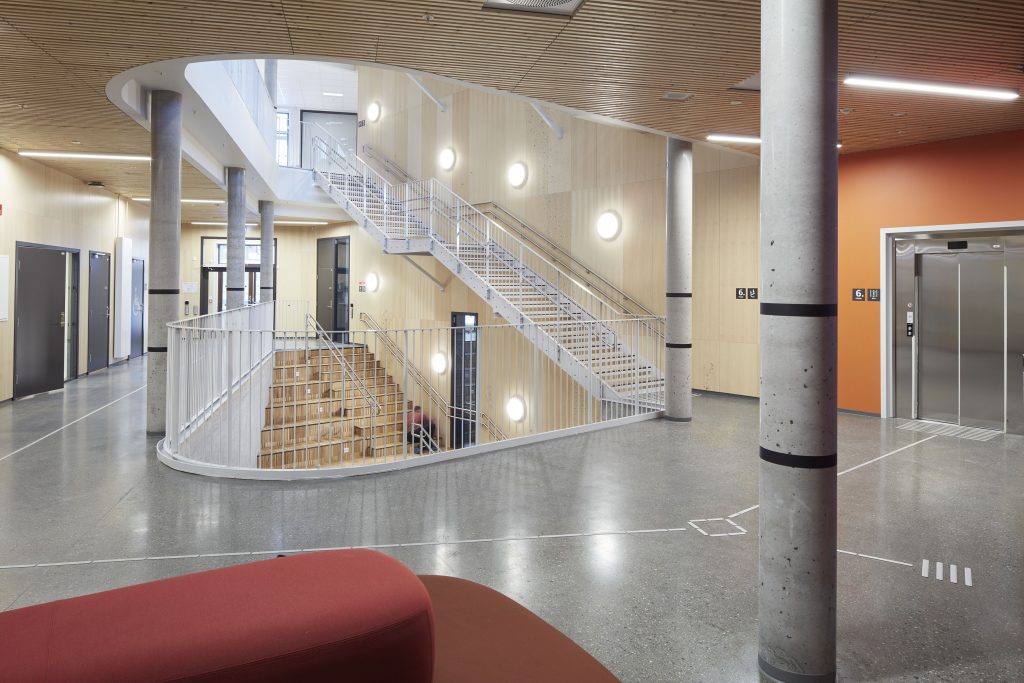 Nybygget er bygget med lavutslippsmaterialer med massivtre og lavkarbonbetong klasse A under terreng.