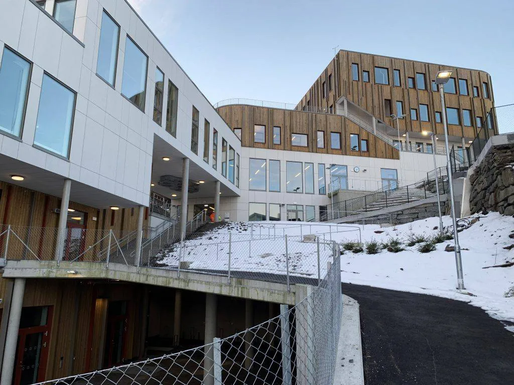 Ved årsskiftet var det full drift av skolen, som er en kombinert barne- og ungdomsskole med plass til opptil 650 elever fra 1.-10. trinn. 250 elever ved barnetrinnet og 400 elever på ungdomstrinnet. I den bratte fjellsiden er skolen bundet fysisk sammen i en bygningskropp, med åtte forskjellig plan. Skole for de yngste nederst og ungdomsskolen i de øverste nivåene.